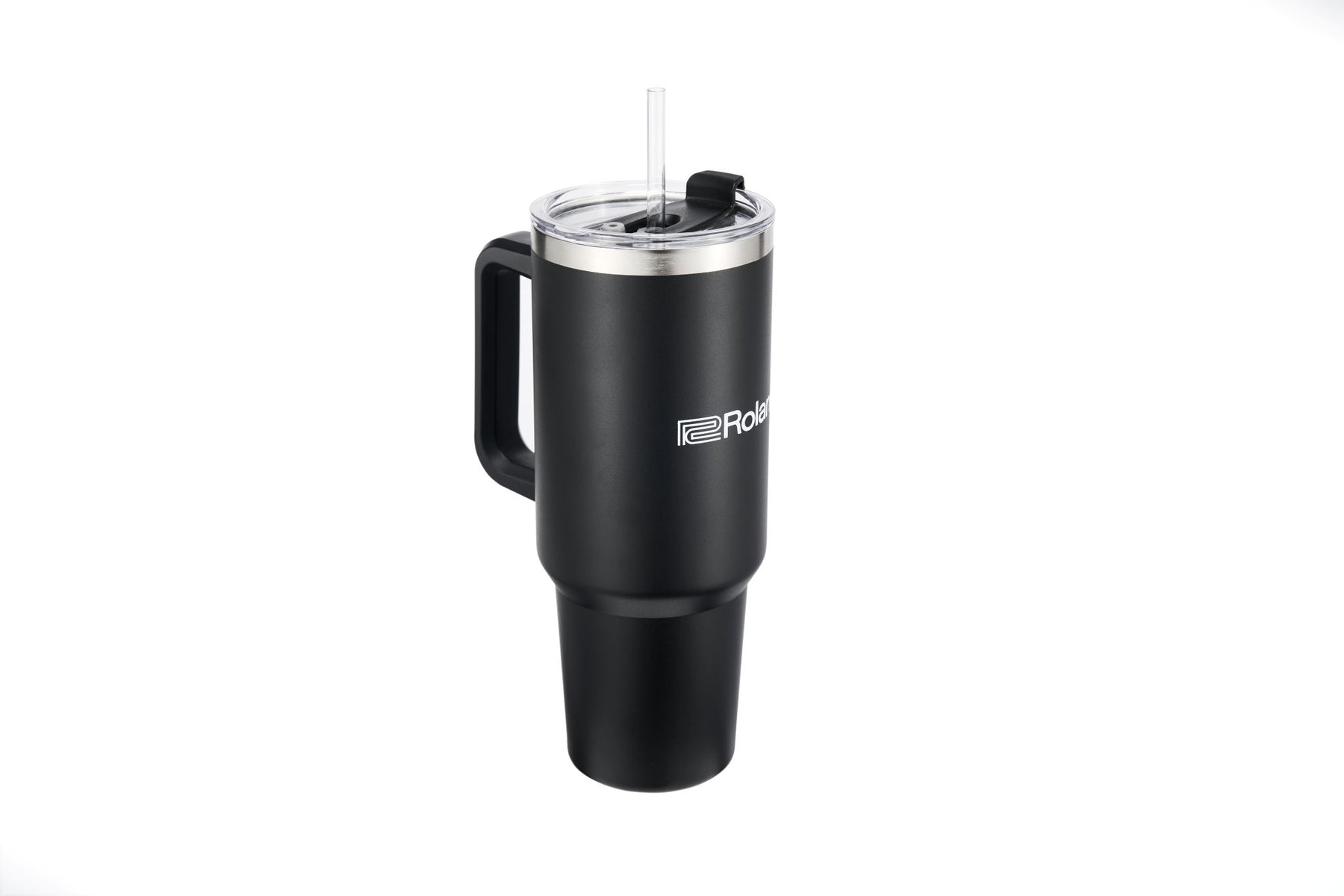 The premium Roland Tumbler features double-walled vacuum insulation to keep your beverages hot or cold for hours. The comfortable handle and secure sip lid make it perfect for travel, commuting or long studio sessions.
