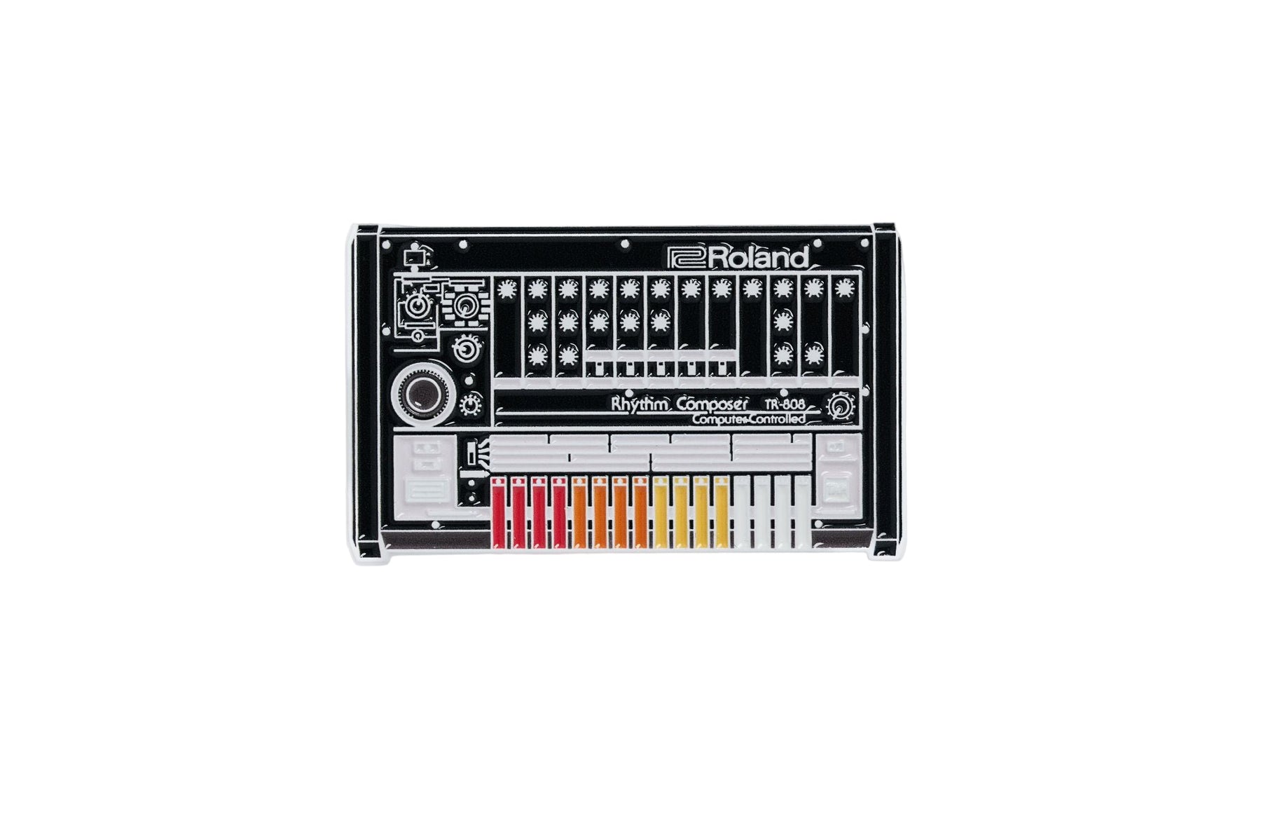 Bring the beat wherever you go with this premium enamel pin inspired by the legendary Roland 808 drum machine.