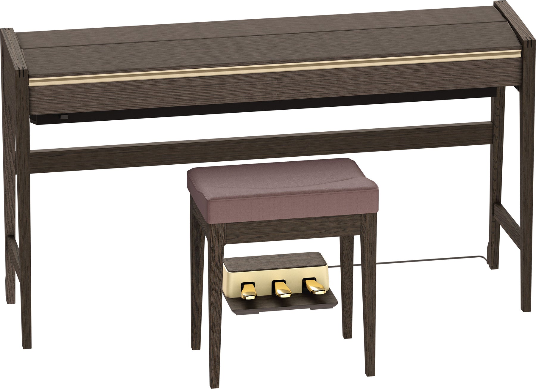 KIYOLA represents the longstanding collaboration between Roland and the renowned artisans of Karimoku, expert Japanese wood furniture manufacturers since 1940. The KIYOLA KF-25's clean profile and unique joints create a piano that is more than a musical instrument - it's a piece of art. The deep-toned Smoked Oak finish enhances the natural wood grain and was selected to complement the clean, linear design of the piano. Both traditional and modern, the KF-25 is as refined as your taste.