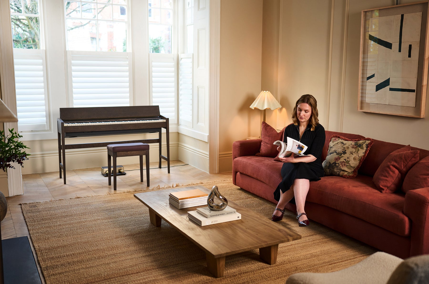 With onboard Bluetooth, you can extend the KIYOLA experience using a smartphone or tablet. Play along with your favorite songs, hearing the music and piano sound blended through KIYOLA's high-quality speakers. The Roland Piano App is the perfect companion, allowing you to edit piano tones, improve with practice tools, and view digital sheet music on your device’s display.