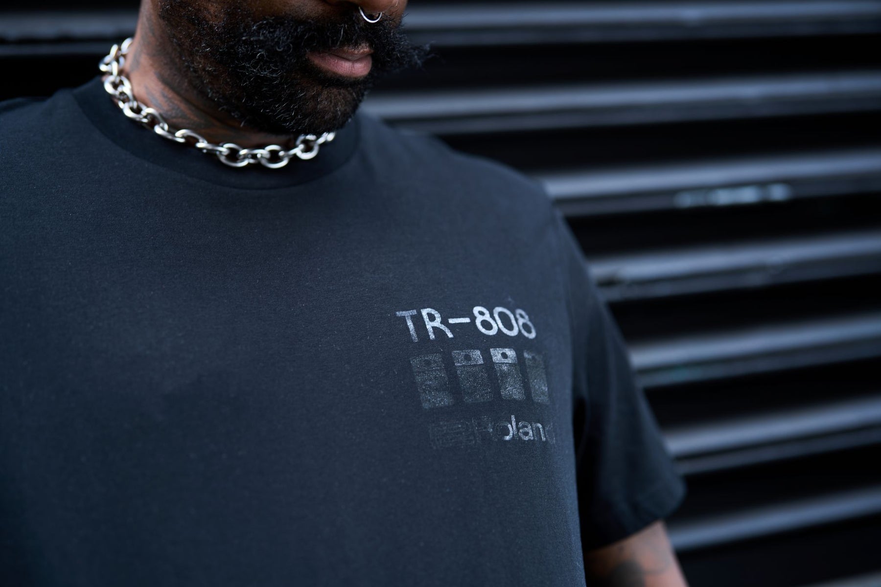 Celebrate the legendary Roland TR‑808 with this sleek, black‑on‑black T‑shirt .